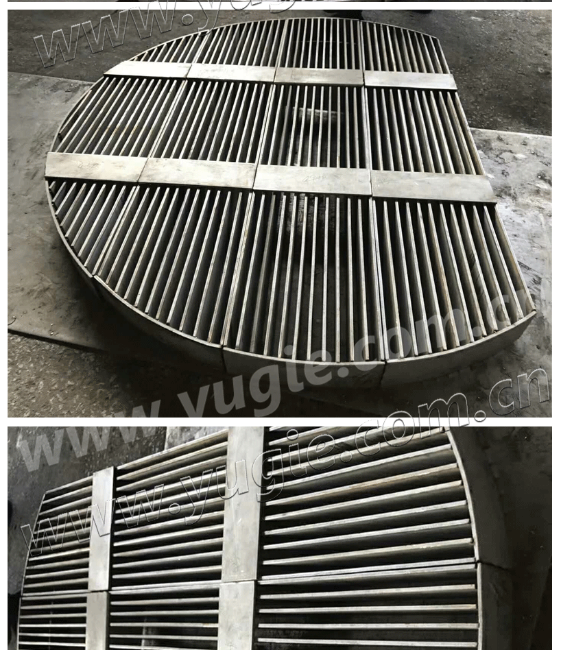 Welded onto tower wall or supporting ring/plate. No matter the small diameter or large diameter packing support grating plates are welded onto tower wall or supporting ring/plate on the tower wall for rigid and firm structure.